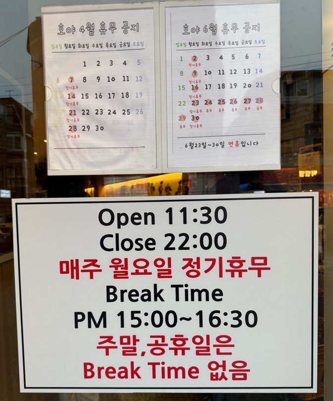 주말,공휴일에 방문하신다면 Break Time은 없지만 평일에 방문 계획이시라면 오후 3시 ~ 4시 30분까지는 Break Time이라 방문이 어려운 점 참고하시면 좋을 것 같습니다.