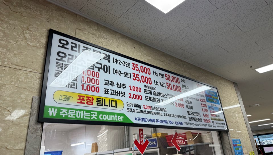 대표 메뉴는 오리주물럭과 오리소금구이입니다.