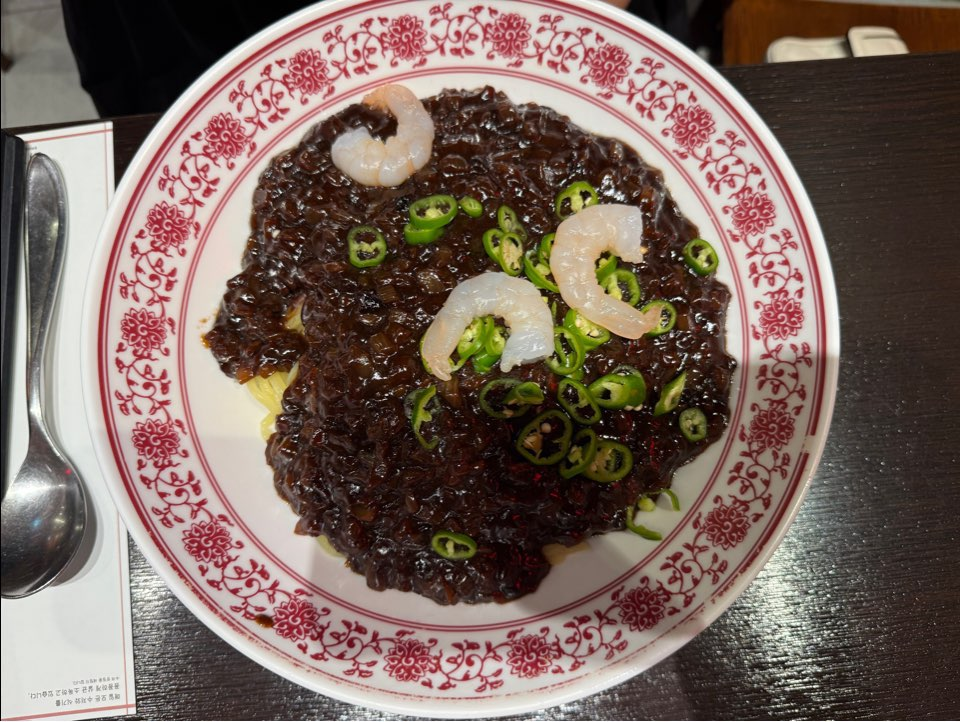 짜장면이 많이 유명하다는 후기 내용이 많았습니다. 면 위에 부드러운 짜장 소스와 특이하게 청양 고추 토핑 및 신선한 새우가 올려져 있었습니다. 개인적으로는 짬뽕,짜장면 모두 맛이 있었습니다.
