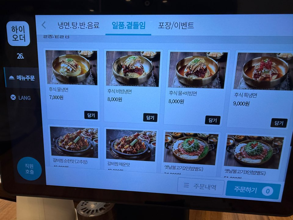 키오스크로 '교동 특냉면' , '교동 손만두', '가마솥 갈비탕'을 주문했습니다.