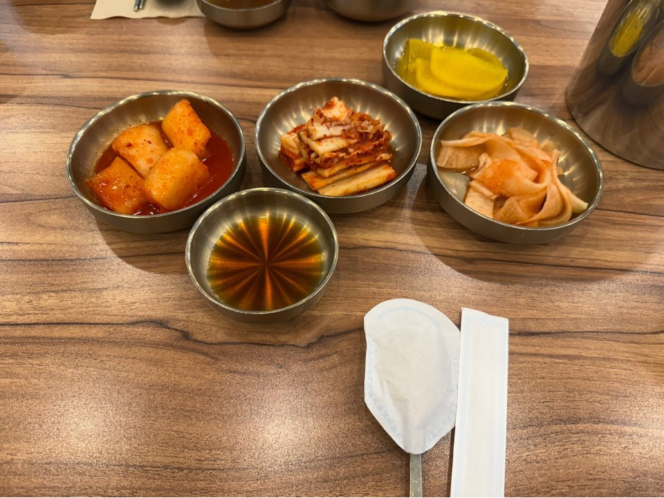 주문과 동시에 여러 종류의 밑반찬이 나왔습니다.