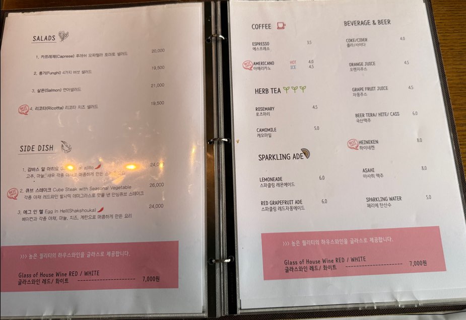 와인을 좋아하지 않기 때문에 같이 먹지는 않았지만, 와인을 좋아하시는 분들이라면 와인과 같이 먹었을 때 양식의 풍미를 더 느낄 수 있을 것 같다는 생각이 들었습니다.
