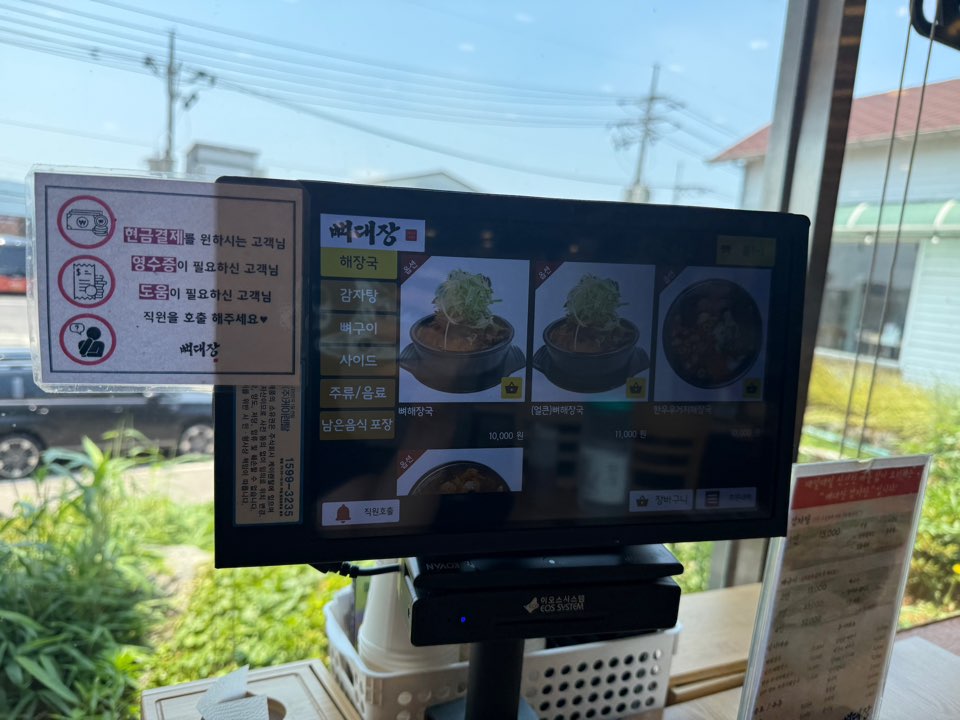 메뉴판 옆에는 키오스크가 있습니다. 해당 키오스크에서 직접 메뉴 선택 후 선결제(카드)를 하게되면 주문이 접수되어 음식이 나옵니다.