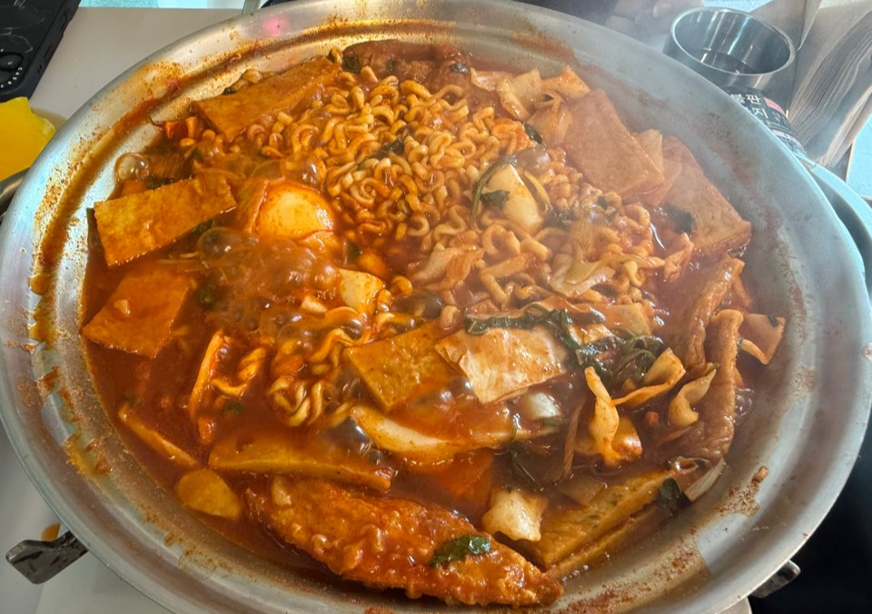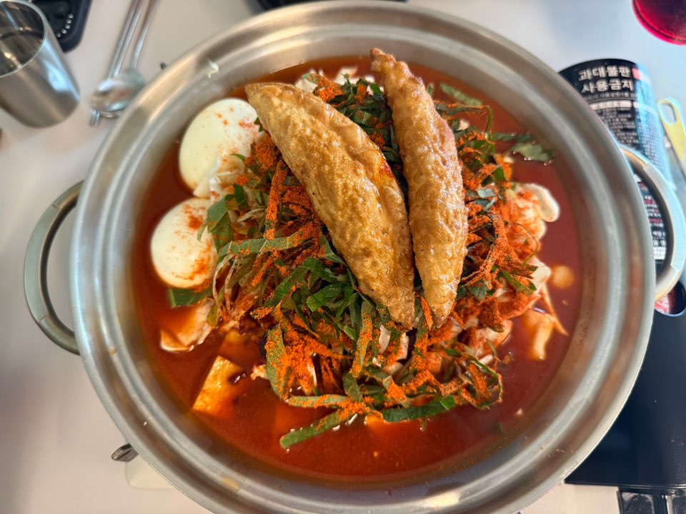 가스 버너를 통해 테이블에서 끓여주면 맛있는 즉석 떡볶이가 완성 되었습니다.