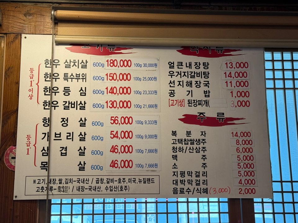 테이블이 고기를 구울 수 있는 테이블로 되어 있기 때문에 저녁에는 고기류 식사를 하시는 손님들도 오시는 것 같습니다.