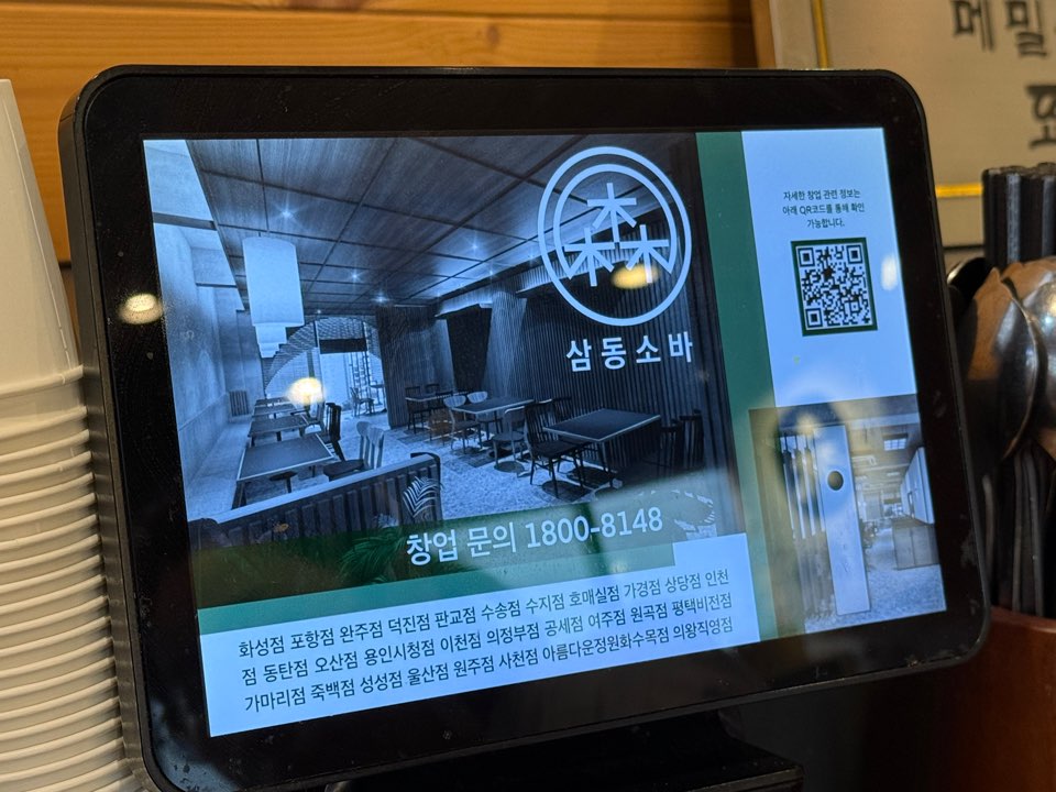 삼동소바에 입장하게 되면, 각 테이블마다 키오스크가 있습니다. 키오스크를 통해 주문을 할 수 있고 삼동소바가 많이 유명해서 그런지 전국에도 다양한 지점이 있었습니다.