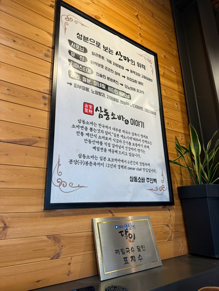 벽면에는 삼동소바의 특별한 전통 제단식 소바에 대한 내용이 담겨져 있습니다.